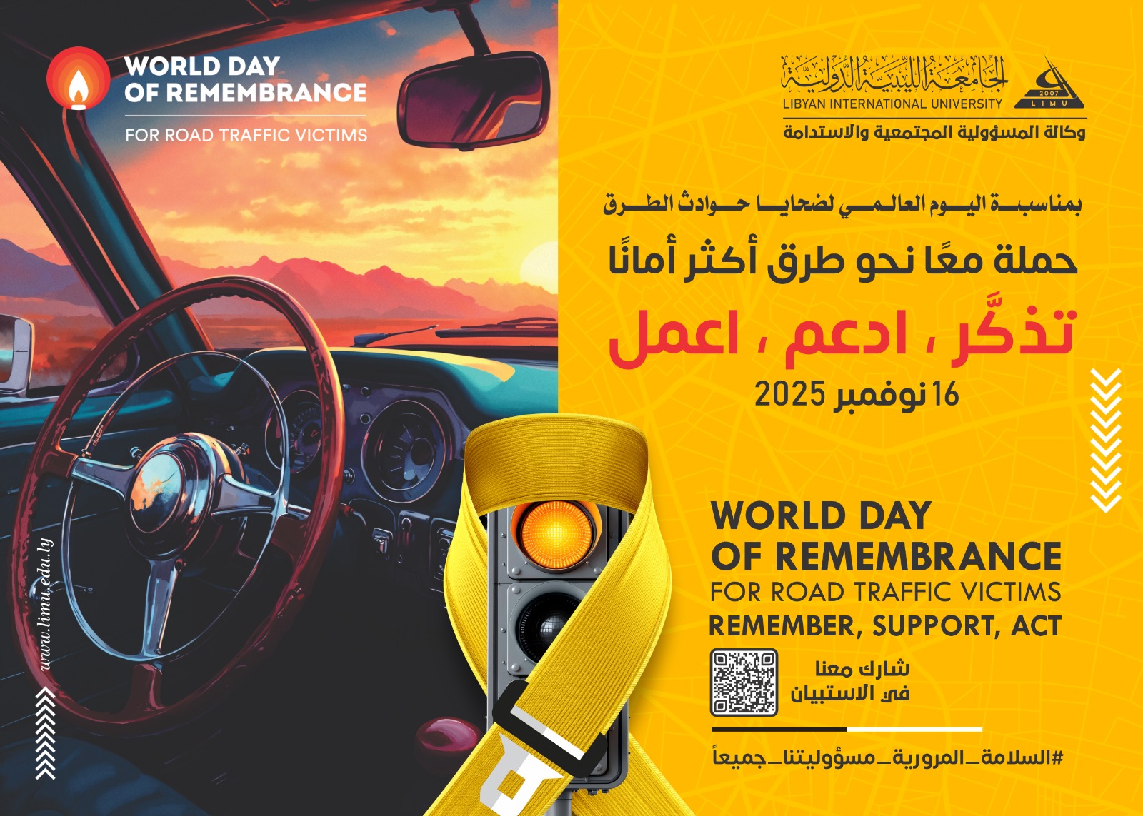 المسؤولية المجتمعية والاستدامة نساهم في التنمية الاقتصادية والاجتماعية والبيئية للمجتمعات… تواصل معنا جامعة ذكية ومستدامة تعزيز ريادة الأعمال والابتكار ترسيخ القيم النبيلة والتنشئة القيمية آخر الأخبار اليوم العالمي لضحايا حوادث الطرق يوم الاحد الموافق 16 نوفمبر 2025 بقاعة ليبيا الواعدة من الساعة 9:00 صباحا حتي الساعة 1:30 ظهرا شاركنا في تعبئة الاستبيان News #الدوليةجامعةالاستدامة News الدولية تنظّم ندوةً علميةً News تأكيداً لمسؤوليتها المجتمعية الدولية تحيي (يومها الوردي) المزيد من الأخبار إحصائيات المبادرات 0 الحملات 0 النشاطات 0 معرض الصور