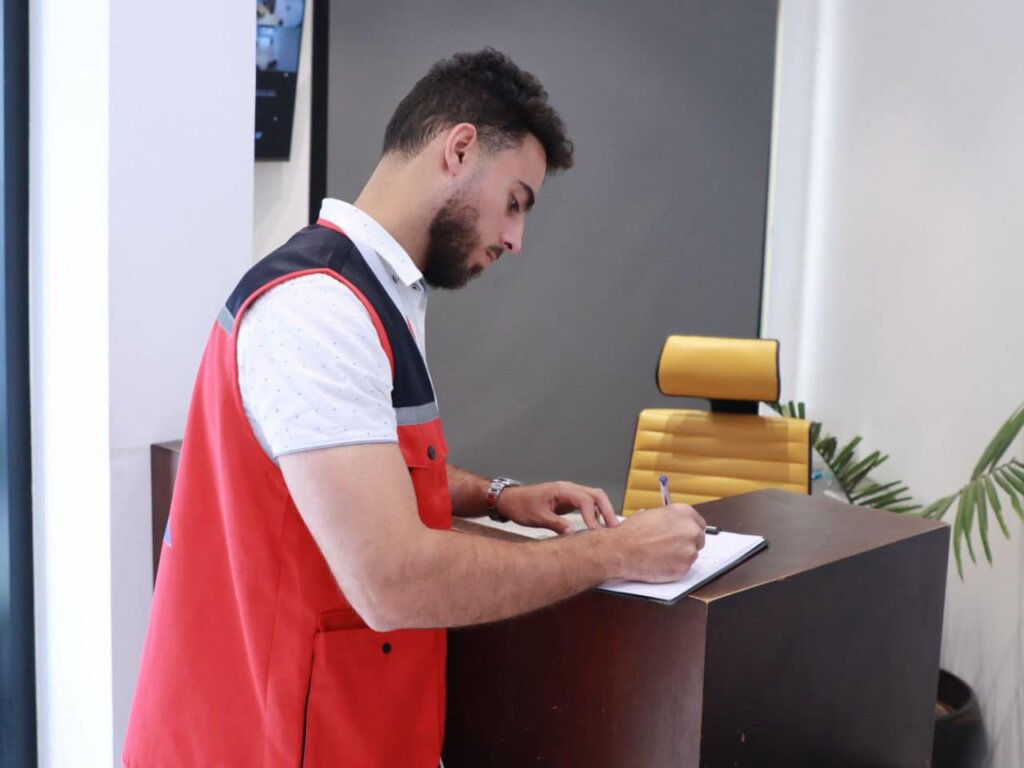 الشاب ( مؤيد الدواكي) منسق المسؤولية المجتمعية بكلية الهندسة وتكنولوجيا المعلومات،